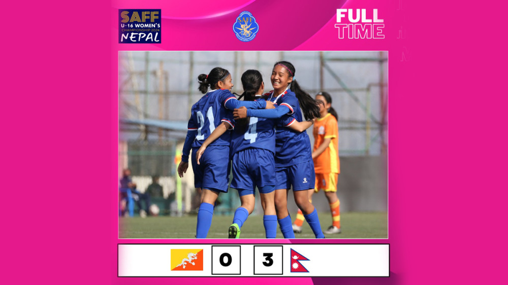 भुटानी गोलकिपर केल्झङा वाङ्मोले समाएको बल पनि बचाउन नसक्दा बल पोस्टभित्र पुगेको हो । यससँगै नेपाल पहिलो हाफमै तीन-शून्यले अघि थियो । दोस्रो हाफमा भने दुवै टिमले गोल गर्न सकेनन् । यससँगै नेपालले साफमा सहज तीन अंक जोडेको हो ।